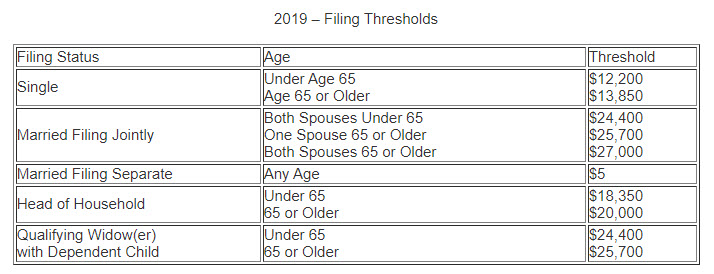 - Generally, individuals are required to file a return if their income exceeds their filing threshold, as shown in the table below. The filing thresholds generally are the same amount as the standard deduction for individual(s).
